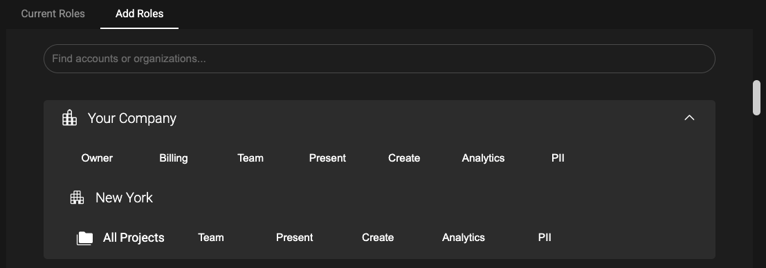 To add new roles, in the user's profile, click Add Roles, then click the roles you want to add for individual projects or all projects.