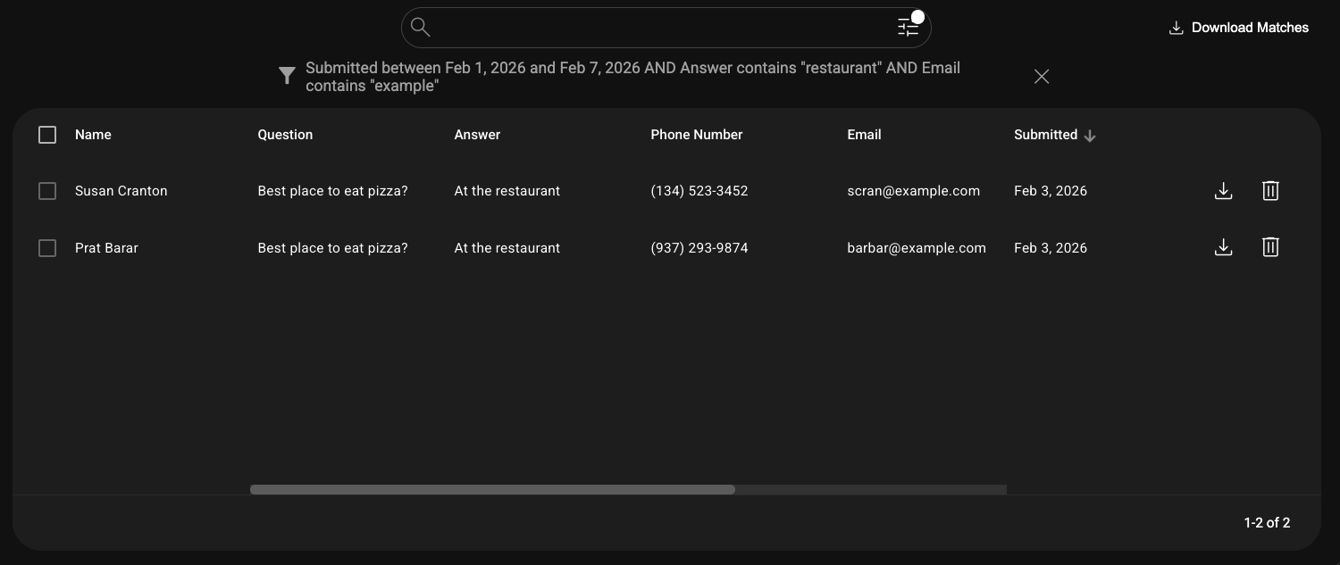 The person you shared with can then view, search, filter, and download entries using all the same powerful tools available in Megaphone Studio.