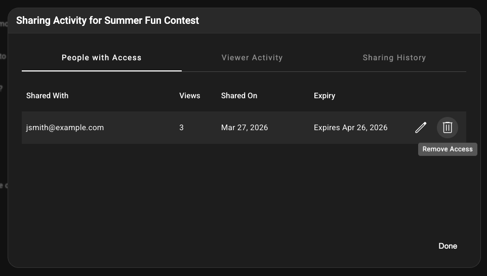 2) Under People with Access, click the Remove Access (trash) button.